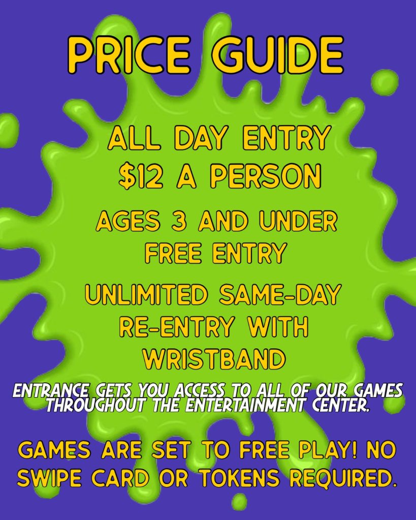 That’s right — play all day, for one low price. No quarters or swipe card needed, just pure 90’s fun at a fraction of the cost! Unlimited same-day re-entry with wristband.